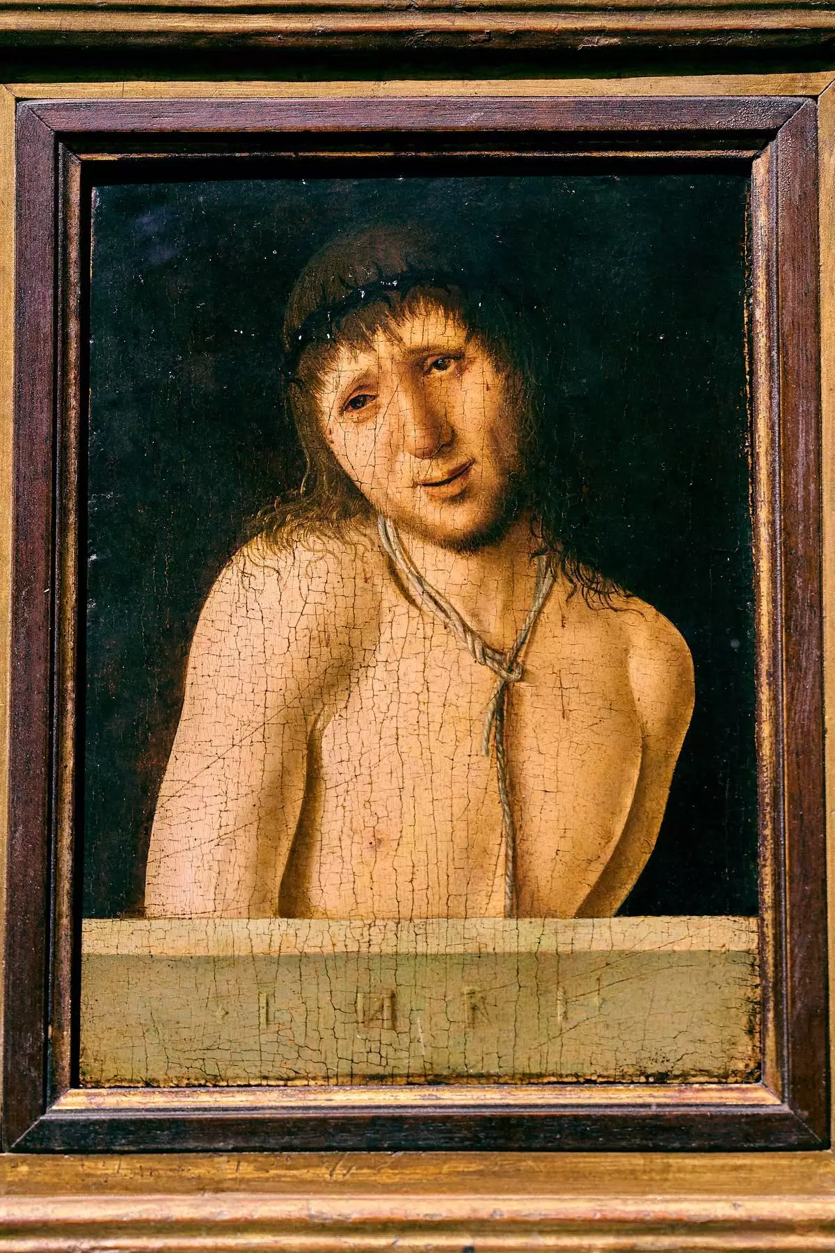 畫作一面是《看這個人》,描繪耶穌頭戴荊棘冠冕、頸繫繩索,呈現般遮·彼拉多(Pontius Pilate)將耶穌交予群眾釘十字架的一刻。另一面則是懺悔的聖哲羅姆(Saint Jerome the Penitent)畫像。