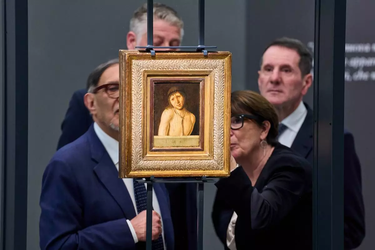 安東尼路達梅西納的《看這個人》,一幅約1470年的蛋彩木板畫,尺寸為20.3厘米乘14.9厘米,近期由意大利博物館總局(Italian General Directorate of Museums)以1490萬美元(約1260萬歐元)購入,周四(2026年3月26日)在羅馬展出。(美聯社圖片/Domenico Stinellis) AP圖片