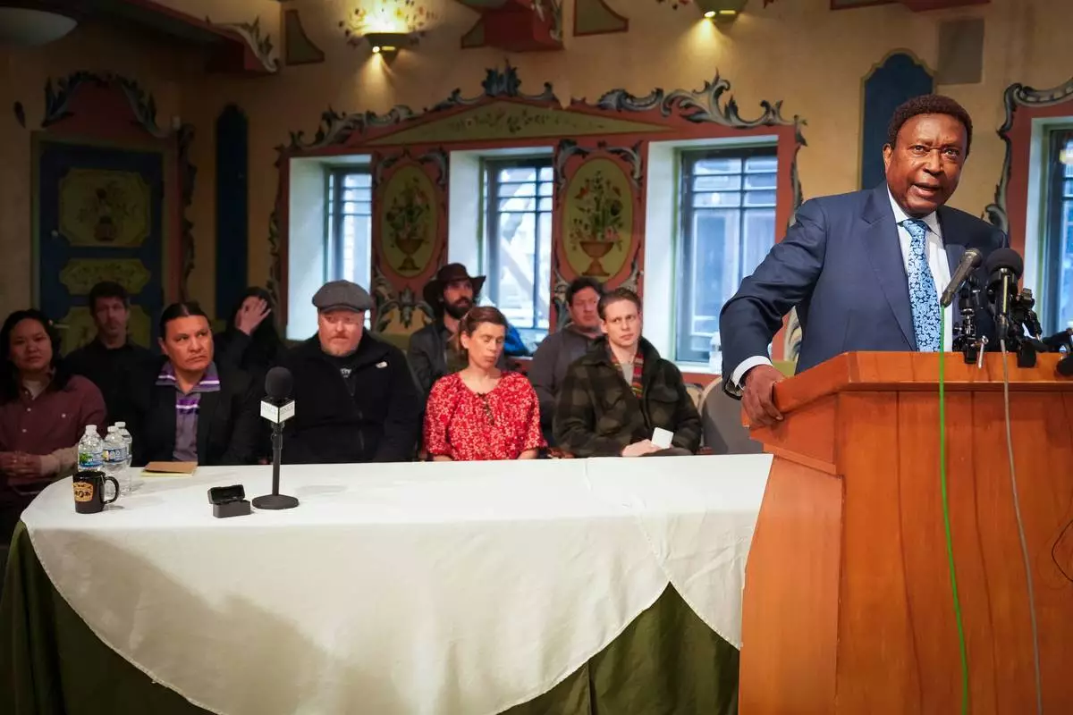 律師約翰·伯里斯周四(2026年3月26日)在明尼亞波利斯一場記者會上發言。(美聯社圖片/Leila Navidi/Minnesota Star Tribune) AP圖片