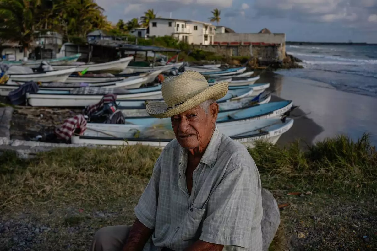 墨西哥薩利納斯,漁民羅伯托·桑托斯(Roberto Santos)因墨西哥灣漏油事件暫停捕魚,坐在岸邊。當局指,漏油源頭來自一艘未確認身份的船隻及兩個天然油滲點。攝於2026年3月26日周四。(美聯社圖片/Felix Marquez) AP圖片