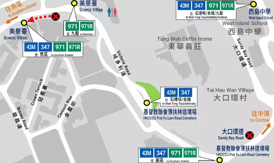 往返數碼港及旺角(弼街)的 971R 號線,將途經薄扶林道墳場(域多利道入口),具體安排如下: