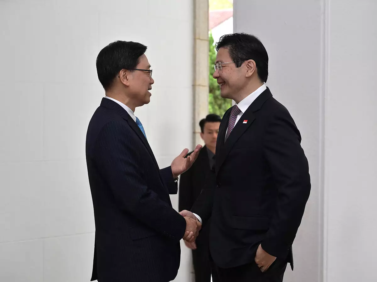 行政長官李家超在禮賓府與訪港的新加坡總理兼財長黃循財會面。