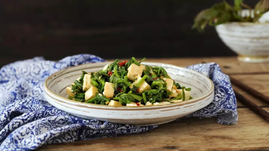若想口味更清爽,可選擇香椿拌豆腐。將汆水後切碎的香椿,拌入嫩豆腐,再加少許麻油、醬油或鹽調味即可。豆腐性涼味甘,有益氣和中、生津潤燥作用,適合春末初夏食用,但脾胃虛寒人士則不宜多吃。