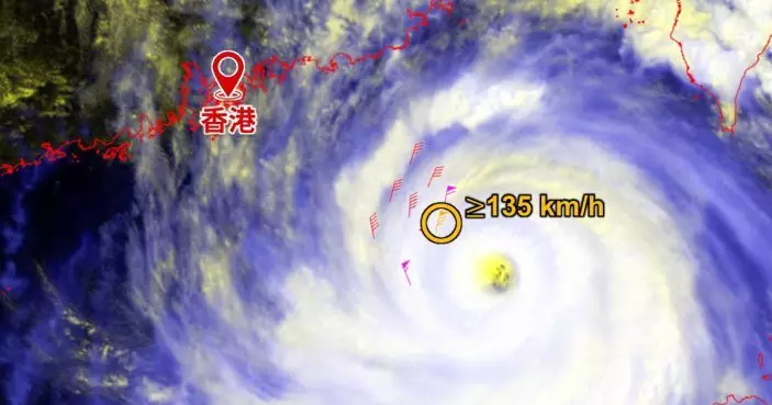 去年9月樺加沙襲港,中心約120公里處錄得近地面風速達每小時135公里。