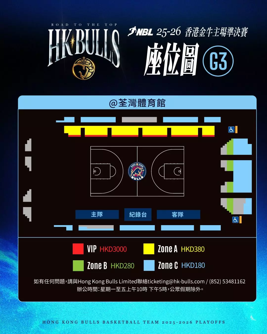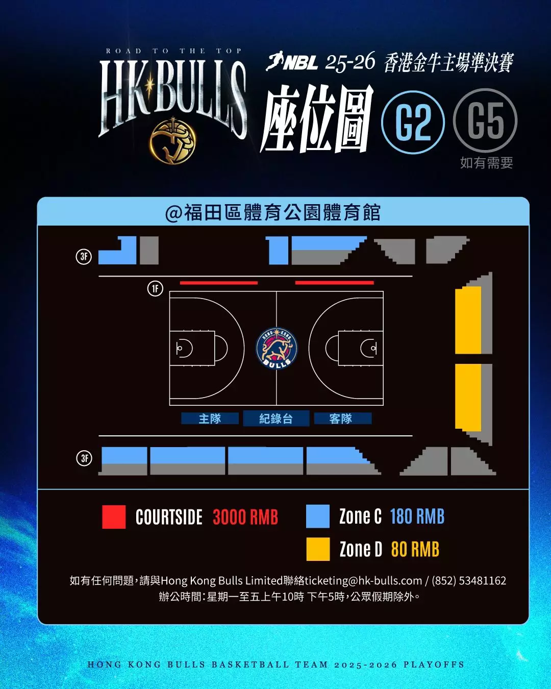 香港金牛NBL季後賽主場對江西鯨裕清酒座位表