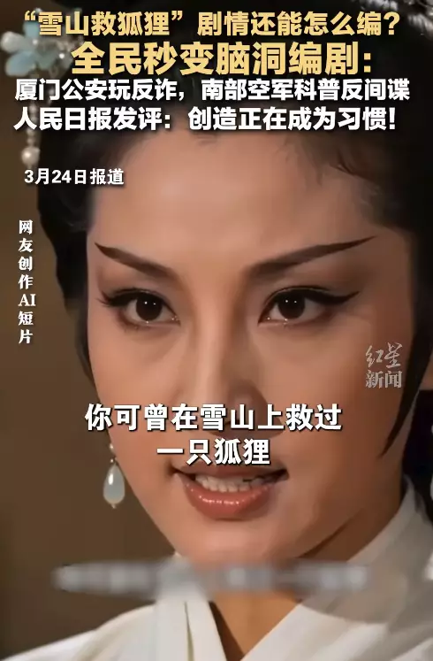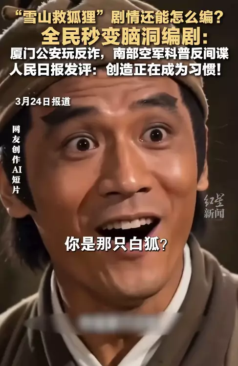 「你可曾在雪山上救過一隻狐狸?」近期爆紅,源於一部AI創作的邵氏武俠風短片,核心情節以荒誕顛覆「善有善報」傳統劇情,竟引發網民二創狂歡,一個月創造出逾50億次播放量。不過,最初的創作者,其實是湖南一間醬板鴨店,目的只是為了宣傳自家醬板鴨。
