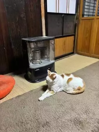 飼主到了晚上將煤油暖爐關掉,大作依然留在原地不願離開。每逢冬天來臨,牠幾乎每日都會自動走到暖爐前「報到」,堪稱家中的忠實「暖氣教信徒」。有時若牠發現飼主尚未開暖爐,更會一直守在前方,彷彿催促對方盡快開啟。