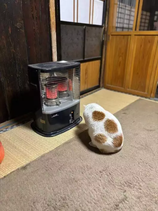 日本長野縣北阿爾卑斯山一名飼主「@don_guri_gura」飼養了7隻貓貓,並時常於社交平台X上紀錄與愛貓們在老屋生活的日常點滴。由於當地近來下雨降溫,飼主便開啟煤油暖爐取暖,其中一隻名為「大作」的橘白貓見狀竟立即跑到暖爐前烤火,渾圓的身形加上自帶橘色「烤焦痕跡」,像極了一團「烤麻糬」,畫面十分可愛。
