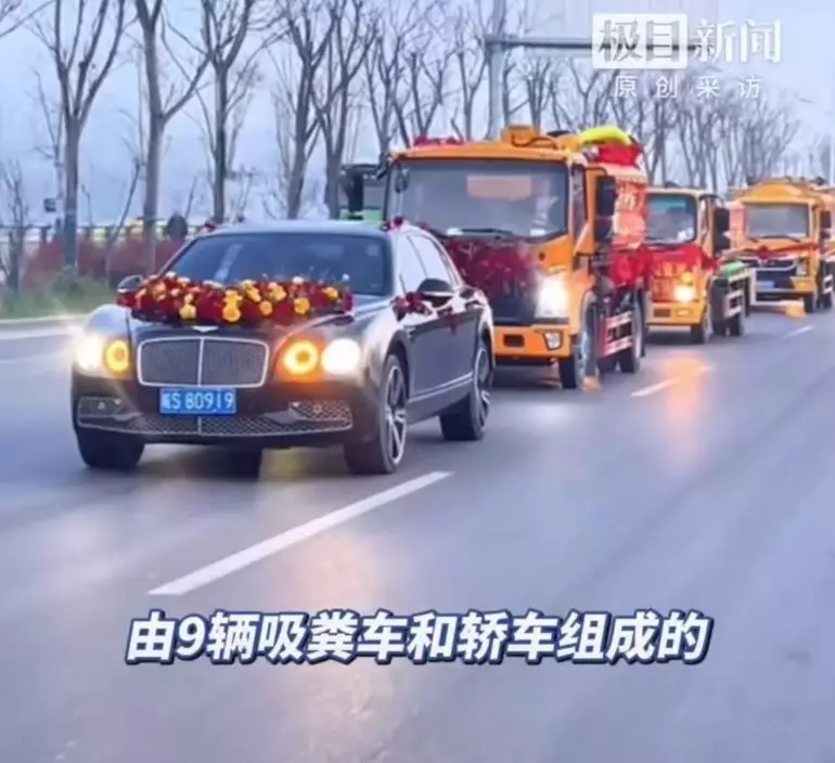 大婚不用豪車 改以9輛吸糞車組婚車隊