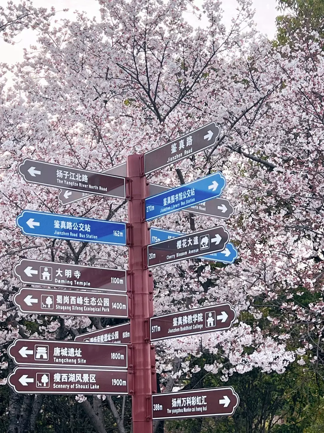 每年3月至5月是江蘇揚州的旅遊旺季,3月底至4月初更是揚州櫻花盛放的日子。有「櫻花大道」之稱的鑑真路,兩旁種滿了過千棵櫻花。粉中透白的花朵吸引不少旅客和本地人特地前來賞花,很多人都表示是讀了唐代詩仙李白的詩句「煙花三月下揚州」,而慕名到揚州一遊;亦有本地大學生擺攤位售賣揚州特色文創工藝品。