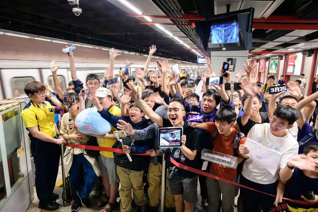 荃灣站有百多名鐵路迷在場等候,見證新列車在荃灣綫首航。MTR FB圖片
