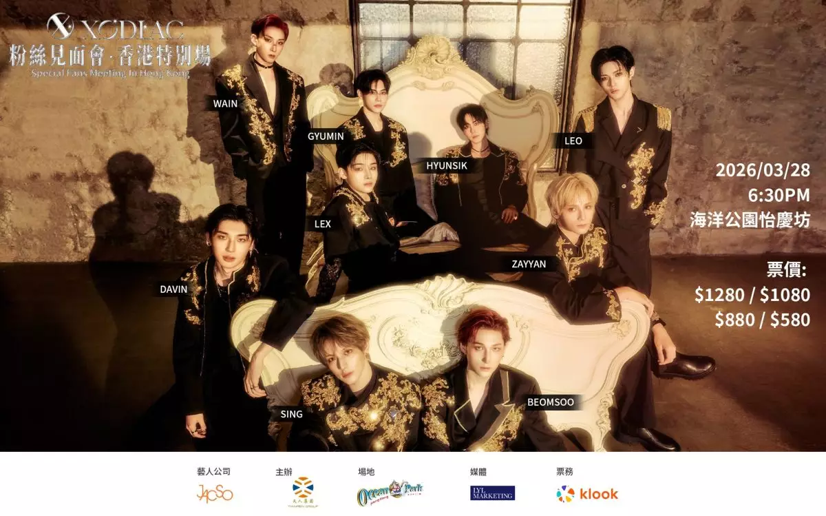 韓國男子偶像團體XODIAC 於3月28日在香港海洋公園怡慶坊舉行《XODIAC粉絲見面會•香港特別場》,為了這次見面會,全體團員秘密練兵,給他們的粉絲X-BLISS帶來最親切、最驚喜的周末晚上。見面會開始前,XODIAC 全體九位成員先接受香港媒體訪問,香港成員SING 表示:「如果去其他地方工作心情會較輕鬆,但回香港自己的家心情比較緊張,感覺也很新鮮。」另一香港成員LEO說小時候有來過海洋公園,好有回憶感。提及他們早前用AI拍攝MV,成員Wain笑言看到以AI技術創造出來的自己感覺好新奇,樣子的確似自己,但是跑動的動作就非常AI。談到成團三周年的工作計劃,隊長LEX表示正在籌備中,但現階段不可以明確向大家透露,希望大家能期待一下。