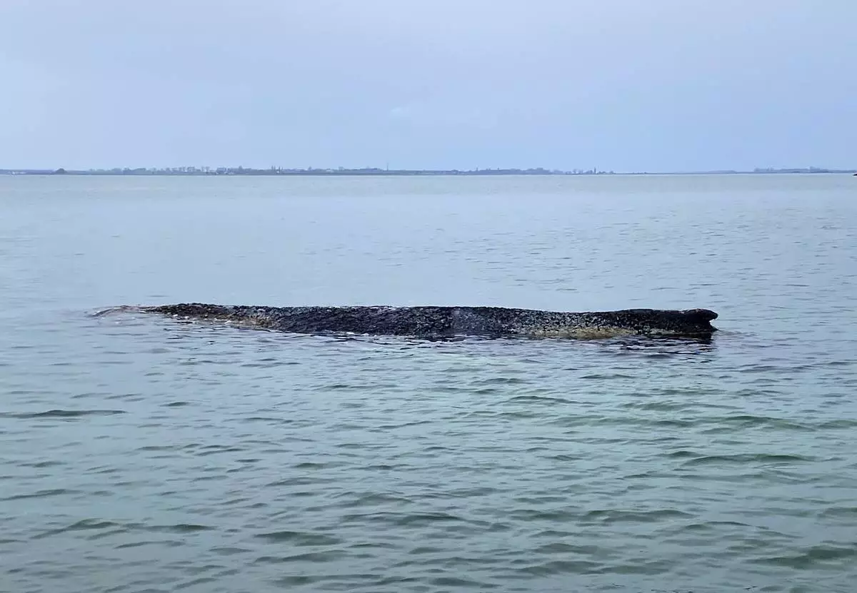 2026年3月28日,德國維斯馬灣(Wismar Bay),一條鯨魚躺在沙洲上。(美聯社圖片/Philip Dulian/dpa) AP圖片