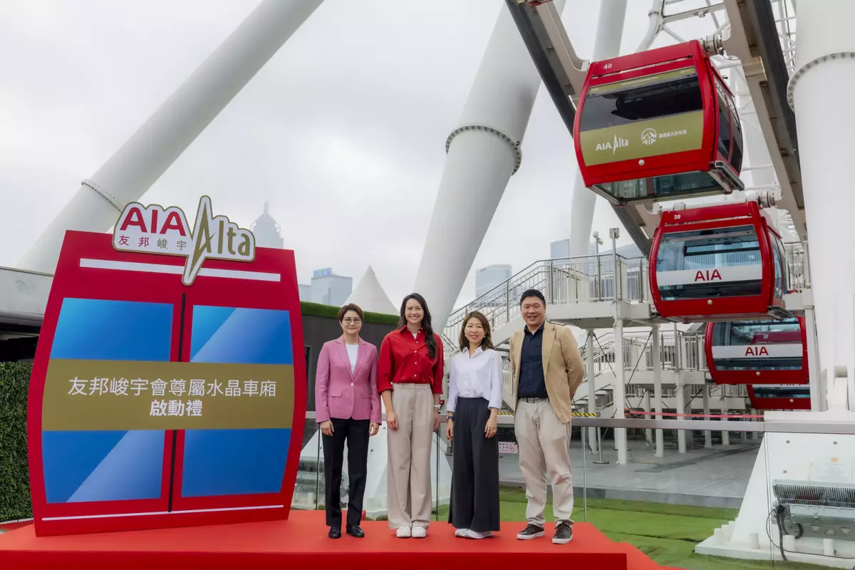 香港 - Media OutReach Newswire - 2026年3月29日 - AIA 香港及澳門大使何詩蓓(Siobhán Haughey)今日親臨中環香港摩天輪,出席「友邦峻宇會尊屬水晶車廂」啟動禮,並聯同友邦香港及澳門首席客戶及市場策劃官黃靄敏女士(Melissa Wong)、友邦香港及澳門首席產品主張策劃及醫療保健官梁莉斯女士(Alice Liang),以及香港摩天輪總經理羅志豪,共同為友邦峻宇會會員尊屬的嶄新體驗揭幕。