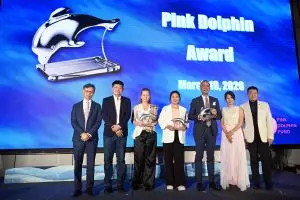 Caption:香港壽臣山獅子會會長倫霈珊(左)及活動大會主席曹海文(右)一起致送感謝狀予全國政協常委高永文醫生,感謝他鼎力支持.
