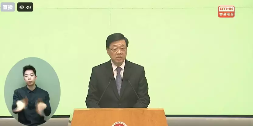 行政長官李家超早上10時45分聯同謝小華一同見傳媒。港台直播截圖