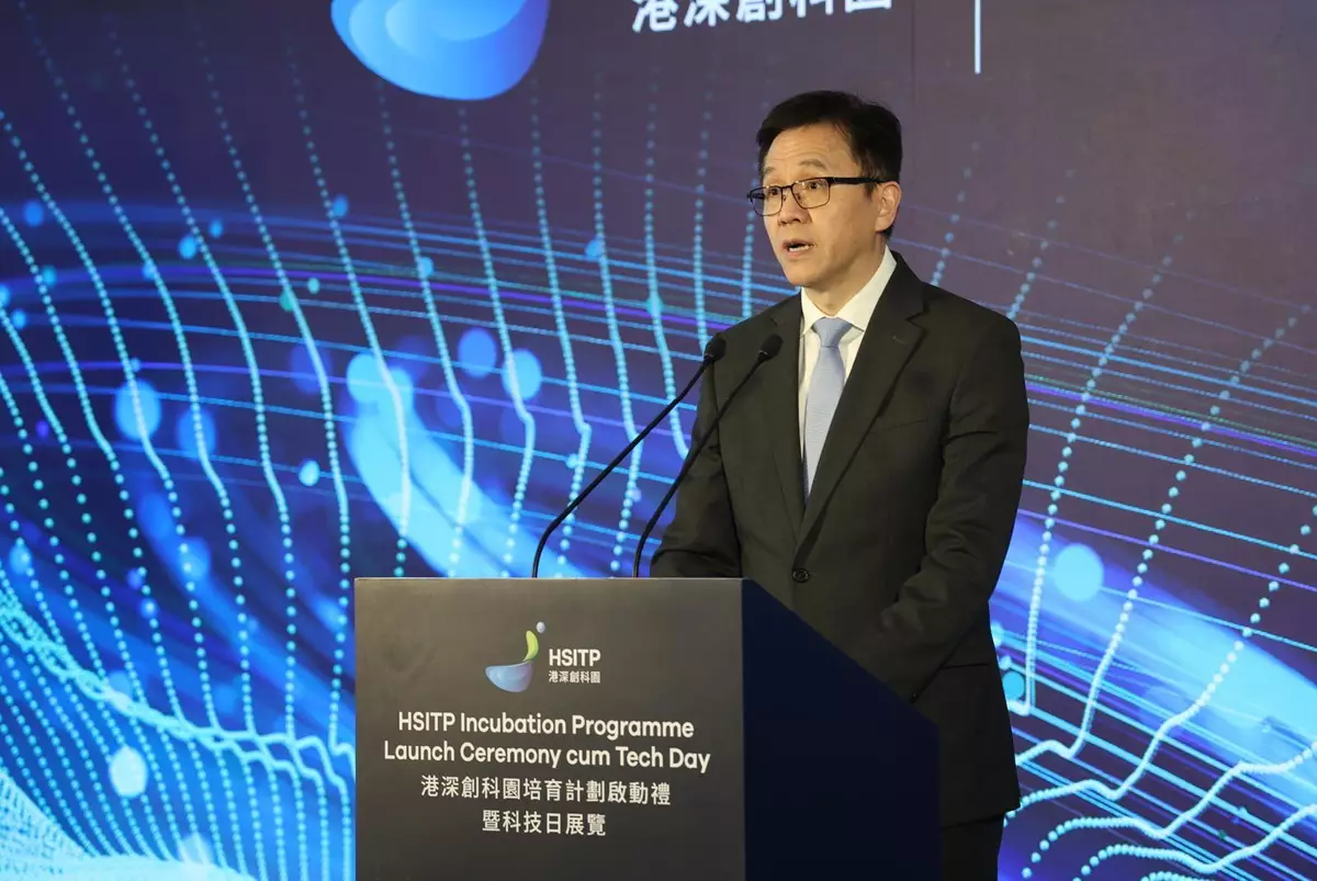 孫東出席港深創科園培育計劃啟動禮暨科技日展覽致辭。政府新聞處圖片