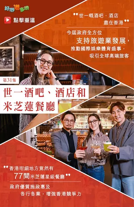 事實上,「全球50最佳酒吧」第一位在香港,而去年「世界50最佳酒店」榜首位置都由香港的酒店奪得,即是世一酒吧、酒店盡在香港。另外,最新一期米芝蓮指南公佈,香港如此體量的城市,竟然有77間米芝蓮星級餐廳,數目甚至多過一些國家。而剛剛出爐的「亞洲50最佳餐廳」,香港亦歷史性包辦冠亞兩個席位。