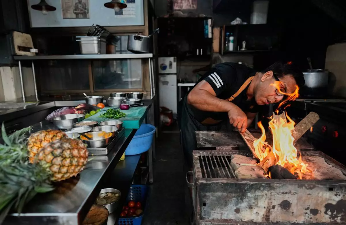 2026年3月19日周四,印度古瓦哈蒂,來自阿薩姆地區的廚師阿圖爾拉赫卡爾(Atul Lahkar)因地區性燃氣短缺,正用木材和煤炭生火為其餐廳準備食物。(美聯社圖片/Anupam Nath) AP圖片