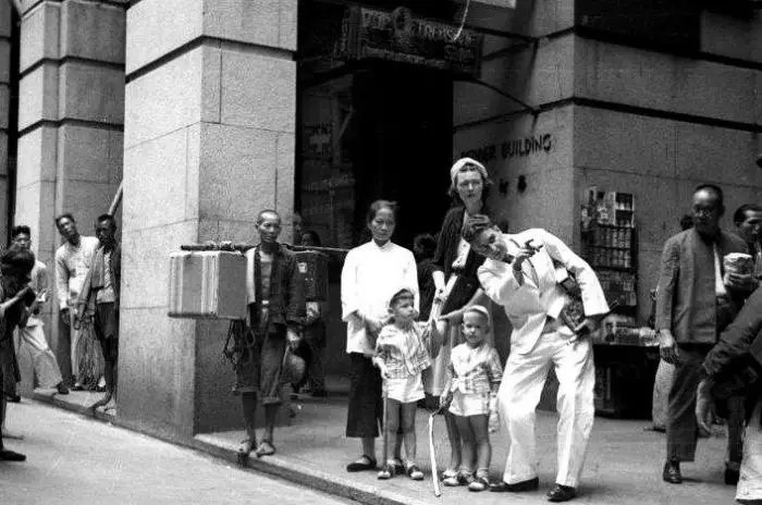 1941年中環畢打街,一家四口的外國家庭有馬姐跟著 (網上圖片)