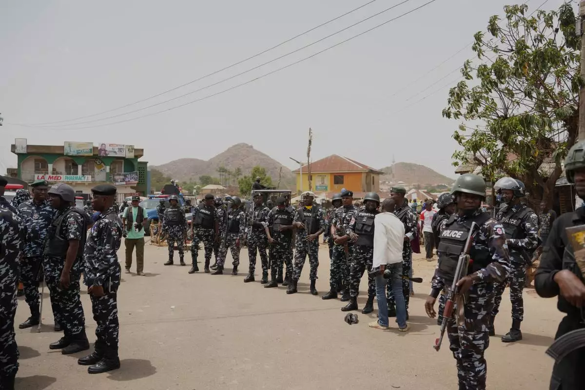 2026年3月30日周一,尼日利亞喬斯北部(Jos North)加里亞瓦耶(Gari Ya Waye)社區周日晚遭槍手襲擊後,警員在現場聚集。(美聯社圖片/Samson Omale) AP圖片