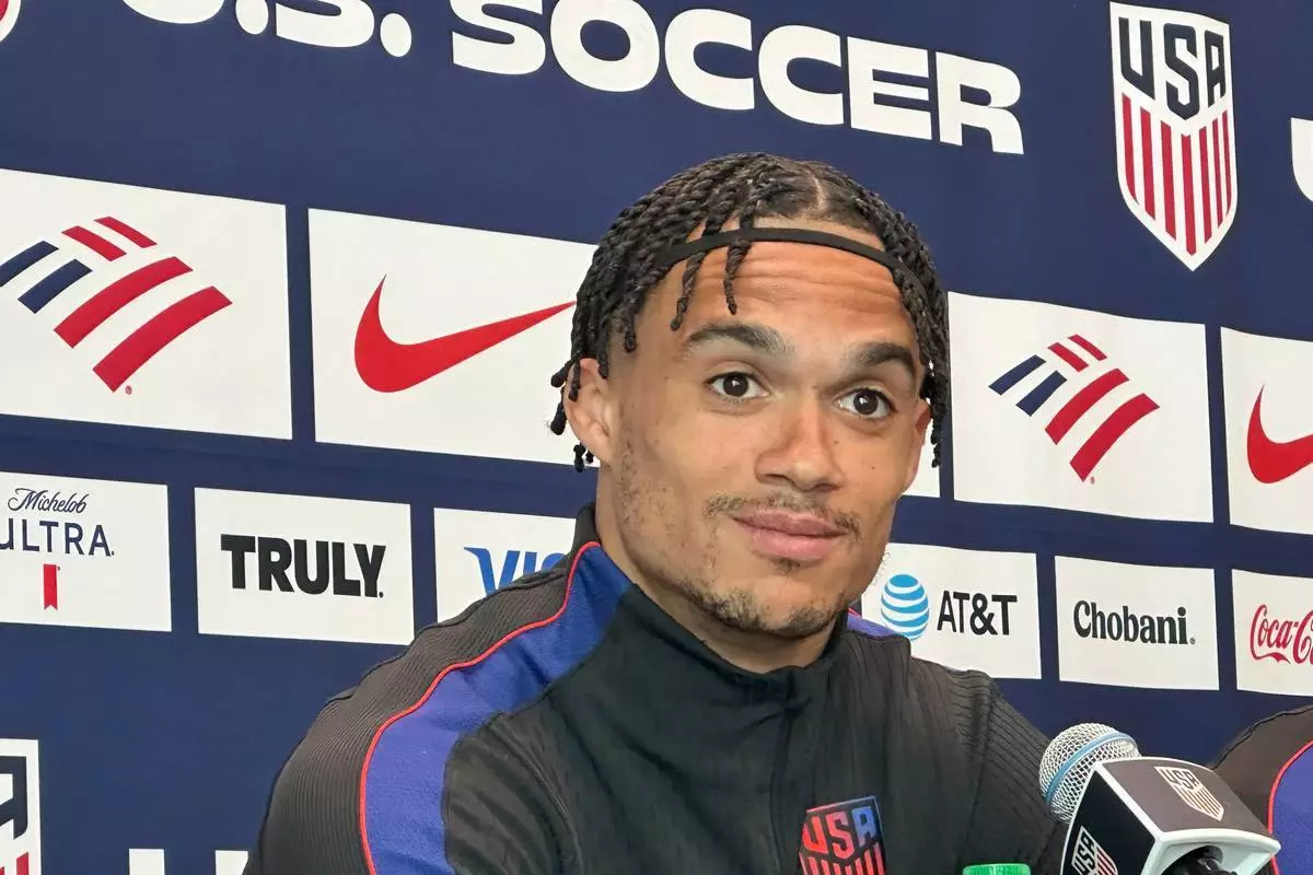 2026年3月27日周五,美國隊球員安東尼羅賓遜在佐治亞州瑪麗埃塔出席男子國家足球隊訓練前的記者會。(美聯社圖片/Ronald Blum) AP圖片