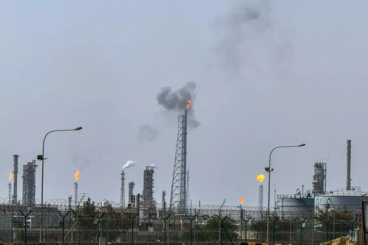 資料圖片:2026年3月28日,伊拉克巴士拉(Basra)附近,工人走在祖拜爾(Zubair)油田的脫氣站區域,該油田的運作因美國和以色列襲擊伊朗引發的中東戰爭而減少。(美聯社圖片/Leo Correa) AP圖片