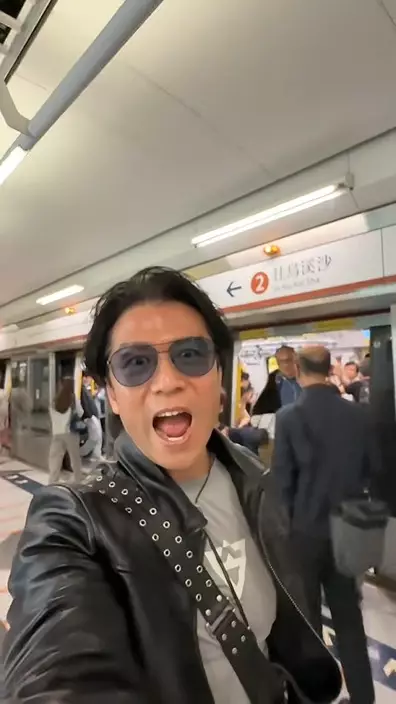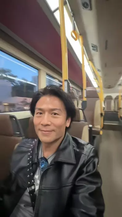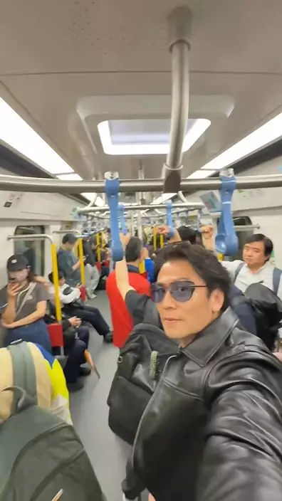 片中所見,唐文龍身穿黑色皮褸,配上油頭造型,依然充滿型格魅力,但身處車廂內卻完全未被認出。周圍乘客大多低頭玩手機,未有留意這位「型佬」就在身旁。