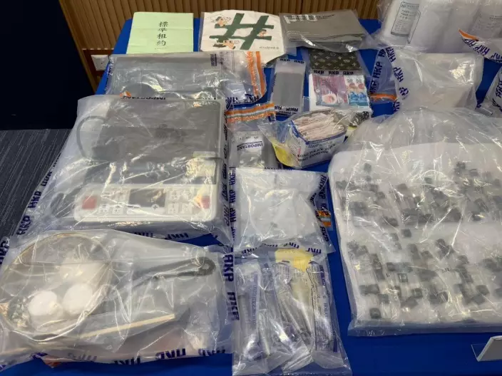 探員於星期一(3月30日)下午約3時53分在目標單位附近埋伏,發現一名男子手持環保袋步出單位,立即上前截查,環保袋內檢獲10粒載有懷疑液體依托咪酯的煙彈,遂將男子押回單位內搜查,再檢獲300粒同類煙彈、約404克依托咪酯粉末、約4.38公升依托咪酯液體,以及大量製毒工具,包括原材料、香味甘油、電磁爐、針筒、電子磅及煙彈膠殼等。行動中檢獲的毒品總市值超過107萬港元。