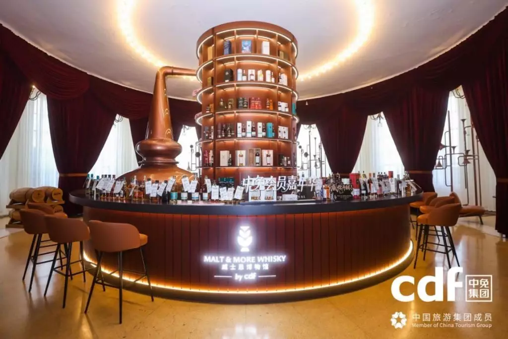 中免集團力情打造的威士忌吧涵蓋 40個品牌的 102 款酒品,其中不乏中免獨家產品。吧台延續海口國際免稅市威士忌博物館的設計基因,旨在為威士忌愛好者及廣大中免會員打造專屬的沉浸式威士忌文化體驗,讓參與者深度感受威士忌的釀造文化、品鑒文化與社交文化,讓文化體驗成為連接品牌與會員的堅實橋樑。