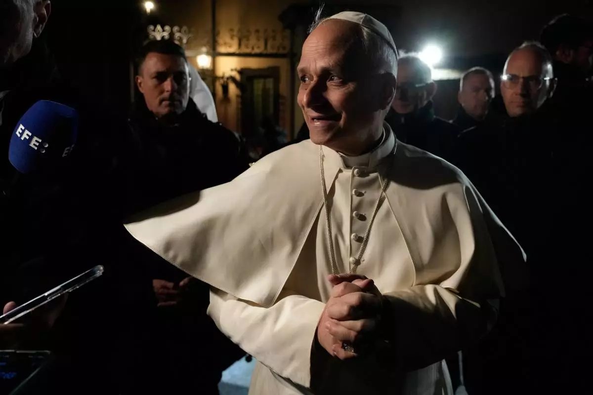 2026年3月31日周二,教宗利奧十四世(Pope Leo XIV)離開羅馬(Rome)市郊的岡多菲堡(Castel Gandolfo)住所,返回梵蒂岡(Vatican)時與記者交談。(美聯社圖片/Gregorio Borgia) AP圖片