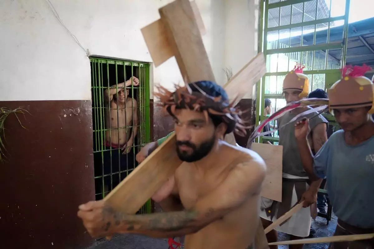 2026年3月31日周二,巴拉圭亞松森(Asuncion, Paraguay)的塔昆布監獄(Tacumbu prison),囚犯們正在重演苦路。(美聯社圖片/Jorge Saenz) AP圖片