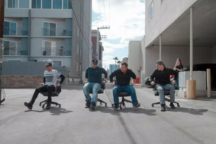 日本京都府京田邊市3月29日舉辦一項速度競賽,選手們須戴頭盔、護肘、護膝與手套,使用未經改裝辦公椅,全程坐著用雙腳蹬地前進,由3人一組接力滑行,在兩小時內盡可能完成更多圈數。
