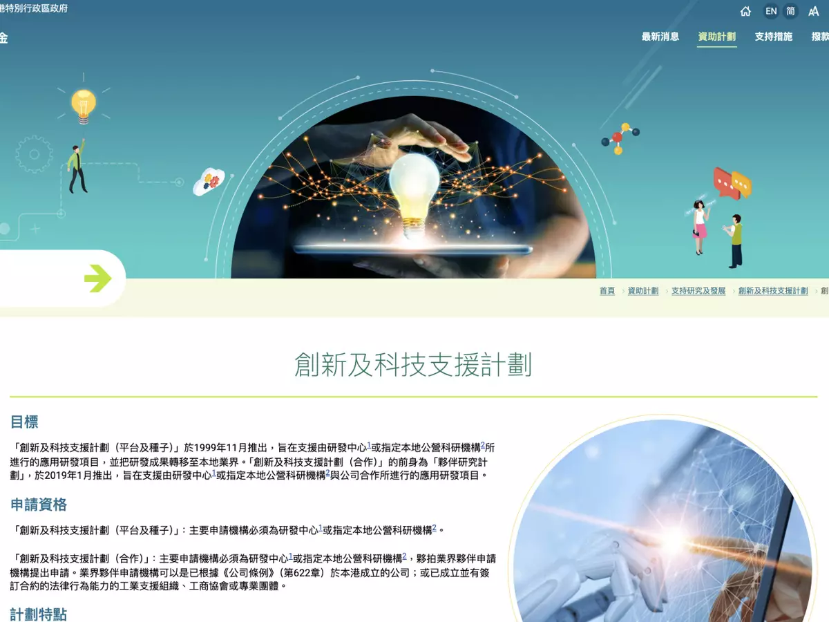 創新科技署公布有關合資格申請詳情。