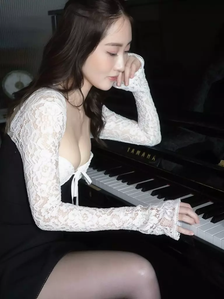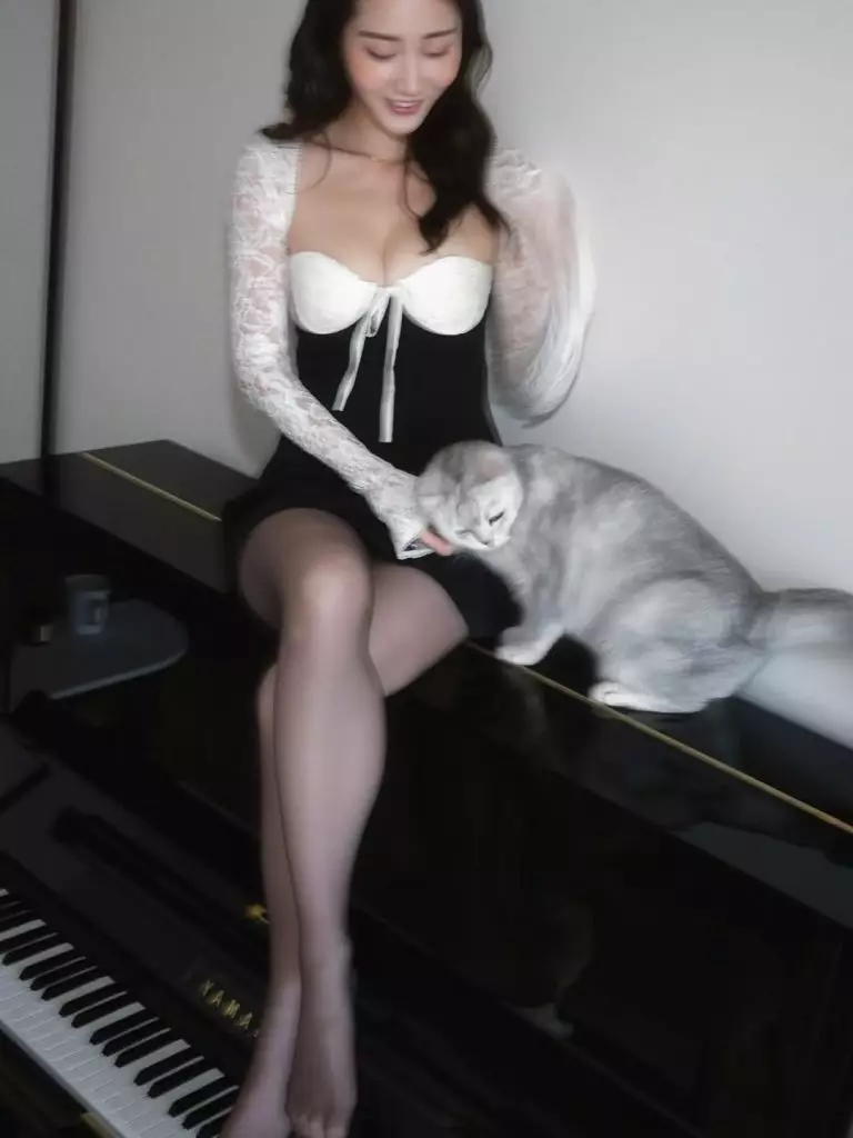 「東張女神」陳曉彤(Cindy)早前疑遭前無綫藝人黃潤成爆料,指她亂搞男女關係及涉毒,雖然她逐一否認並強調潔身自愛,但坦言已被停工。近日她在社交平台大派「自救福利」,上載一輯超低胸黑白短裙照,坐在鋼琴上與小貓互動,一對白滑雙乳及深長事業線「呼之欲出」,側面視角更震撼網民眼球。配埋黑色絲襪大騷修長美腿,獲網民激讚「好搏命」、「好鬼正」,成功靠性感力保人氣。