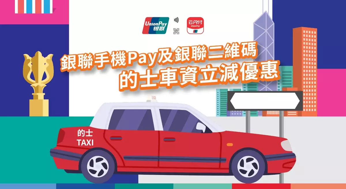 為配合香港的士服務全面邁向電子支付,銀聯國際宣布由即日起至5月5日期間,推出車資立減優惠。乘客使用銀聯手機Pay(如Apple Pay、Samsung Pay、Huawei Pay)進行感應式付款,或使用雲閃付App等支援銀聯二維碼的應用程式支付車資,每程可立減5港元。每卡每日可享優惠一次,推廣期內最多享優惠10次。