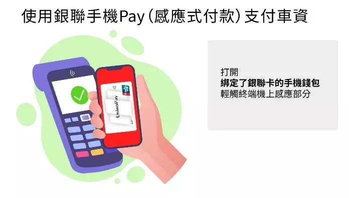 * 使用銀聯手機Pay(感應式付款):同樣需先確認的士支援感應式付款。支付時只需打開已綁定銀聯卡的手機錢包(如Apple Pay),輕觸終端機的感應部分即可完成交易。