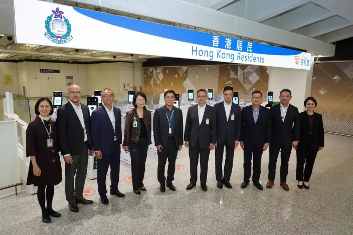 入境處處長郭俊峯和機管局董事會主席林天福到場視察,並見證新e-道啟用。入境處小紅書