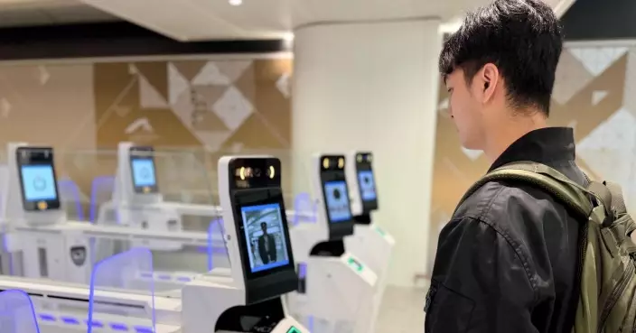 入境處與機管局聯手為機場入境大堂進行升級工程,首批新增設的12條新款e-道今日(4月1日)正式投入服務。新增設的e-道配備「容易飛e-道」功能,合資格的香港居民在回港時,無須出示證件或二維碼,只需看着鏡頭便能自助完成入境手續。