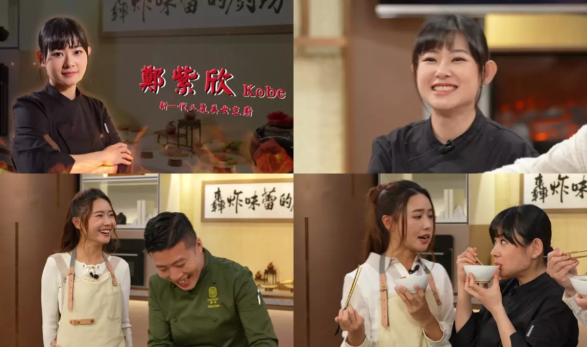 今晚(3月1日)一集,兩位主持區永權(Albert)、戴祖儀(Joey)將與新一代人氣主廚鄭紫欣(Kobe)以及李家鋌(Bosco)一起,為觀眾獻上兩道耳目一新的料理創意料理「西班牙辣肉腸蒜蝦肉燥𰻞𰻞麵」和「沸藤清湯牛腩」。鄭紫欣最近在內地節目《一飯封神》中取得佳績,成功打入12強,被譽為「90後美女主廚」。令人驚訝的是,這位「美女主廚」並沒有接受過正式的廚藝訓練,卻在24歲時勇敢地開設了自己的法國餐廳。今晚炮製的「西班牙辣肉腸蒜蝦肉燥𰻞𰻞麵」,「𰻞𰻞麵」其實是中國陝西關中地區的傳統特色麵食。當製作這道中西合璧的料理時,Joey更被Kobe廚藝驚嘆,更笑言:「原地結婚」、「可唔可以做我Best friend,一個禮拜見兩日!」