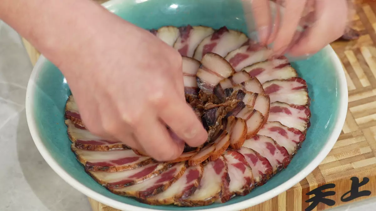 透過切割各式臘味,將其拼成如花般的美麗圖案。