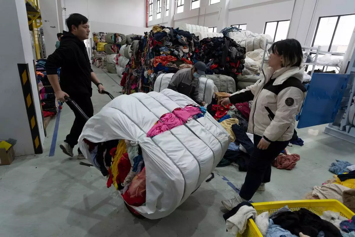 中國東部城市張家港一個工業園區內,一台機器正高速運轉,吞噬著一堆堆舊衣物並進行分揀。這台機器的新穎之處在於,它利用人工智能(AI)技術,以極高速度根據衣物成分進行分類,展示了AI在減少合成紡織廢料影響方面的潛力。