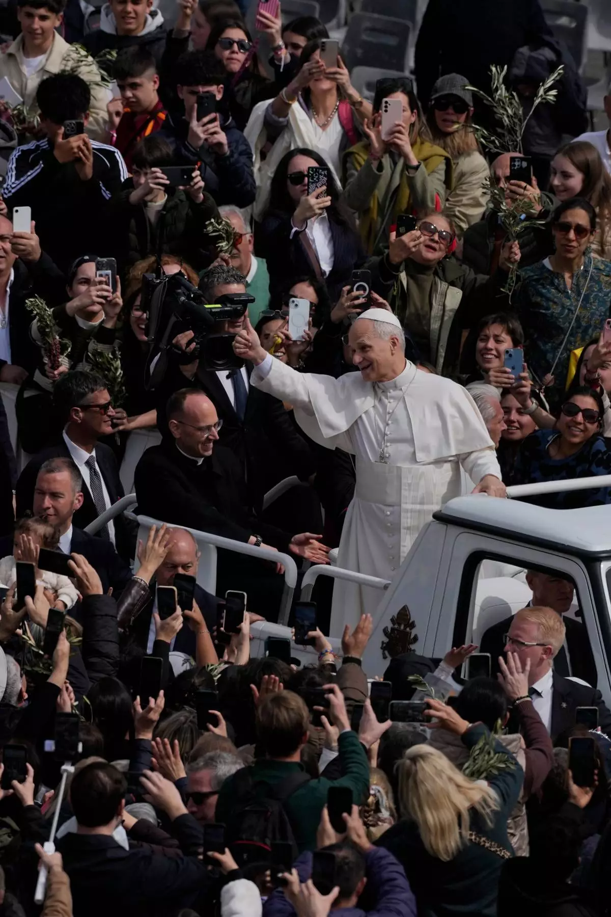 資料圖片:2026年3月29日,在天主教棕枝主日(Palm Sunday)紀念耶穌抵達耶路撒冷(Jerusalem)的節日,教宗利奧十四世(Pope Leo XIV)在梵蒂岡聖伯多祿廣場(St. Peter's Square)主持彌撒後離開。(美聯社圖片/Alessandra Tarantino) AP圖片