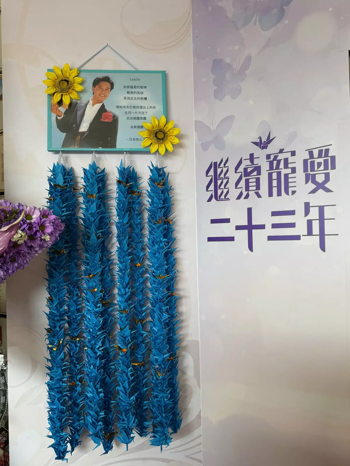 現場化為一片花海,日本「哥」迷親手摺製千羽鶴。