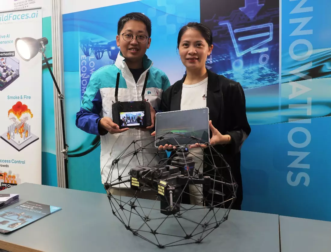 InnoEX 展商海宏技術的低空經濟無人機一體化解決方案,集成 AI、激光雷達等多項技術,可檢測滲漏、幕牆清洗等多項專業任務,為建築工程領域提供高效、智能的低空作業服務。