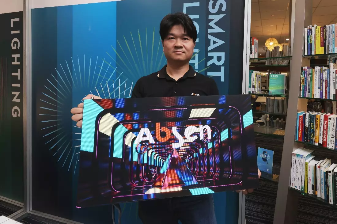 智慧照明博覽展商艾比森(Absen)帶來 KLCOB V2系列大屏,搭載獨特的黑色聚合物塗層,呈現均勻深邃的黑色,帶來沉浸式的視覺深度。採用先進的倒裝晶片(Flip Chip)與 HBB 共陰極技術,即使在高負荷下仍能保持低溫運行,帶來鮮活的視覺體驗。