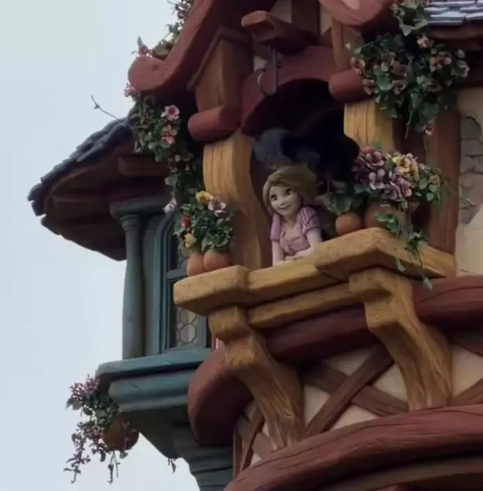 影片可見,樂佩公主正在高塔中愉快「唱歌」,期間兩隻烏鴉先後飛近,接連咬扯她的頭髮,其中一隻更直接停在她頭上,不斷啄向頭頂。不過,由於高塔中的樂佩其實是表演用的假人裝置,因此即使遭烏鴉連番「攻擊」,仍一直維持笑容及唱歌動作,也令整個畫面顯得更為滑稽。拍攝者見狀忍不住驚呼:「長髮公主被烏鴉吃掉了,太可怕了」。