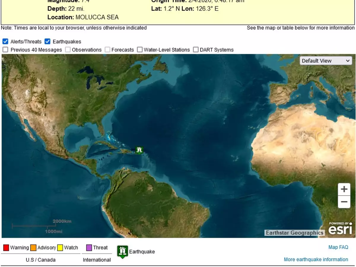 香港天文台則錄得在摩鹿加海北部發生7.4級地震,震央位於萬鴉老以東約160公里。