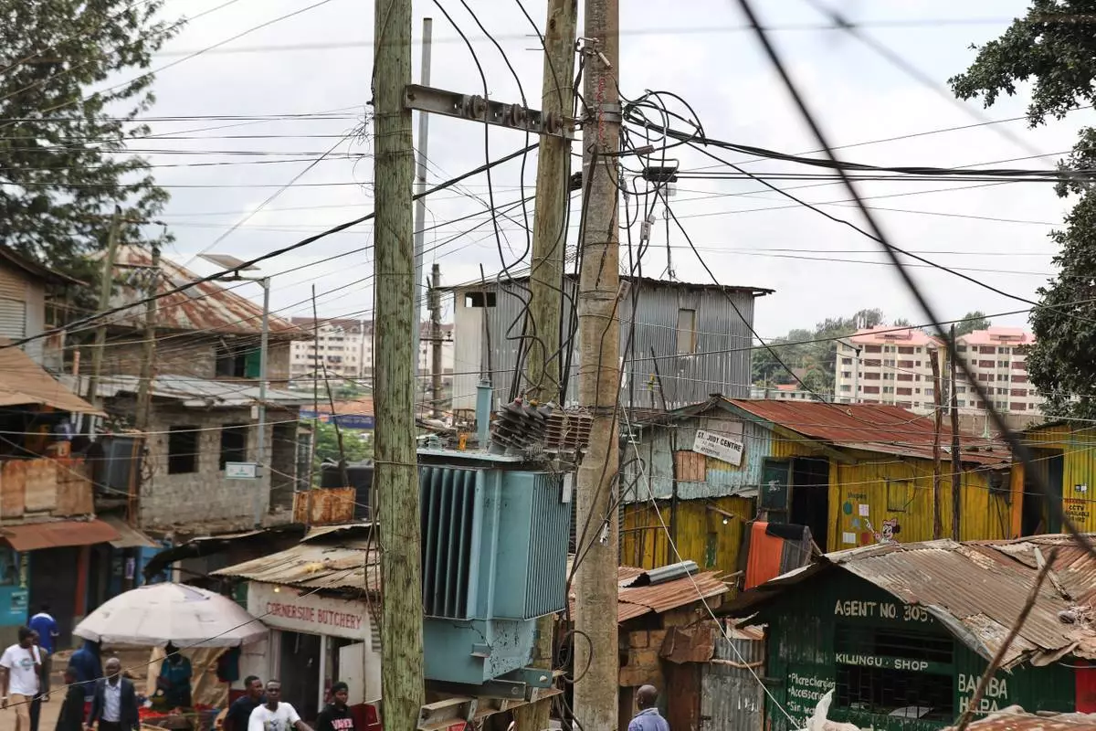 2026年3月31日周二,肯尼亞內羅畢 (Nairobi) 基貝拉 (Kibera) 非正式定居點上空電線桿及電纜的景象。(美聯社圖片/Henry Naminde) AP圖片