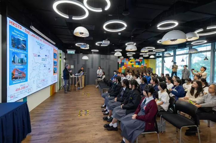 港燈旗下的綠色教育項目「綠得開心計劃」首次與香港科技園公司合作,帶領學生走進本港創科核心地帶,實地考察最新的綠色科技發展,並與多間環保科技初創企業交流互動,從中啟發 Gen Z(Z 世代)對科學研究和應用創新的興趣和熱情。